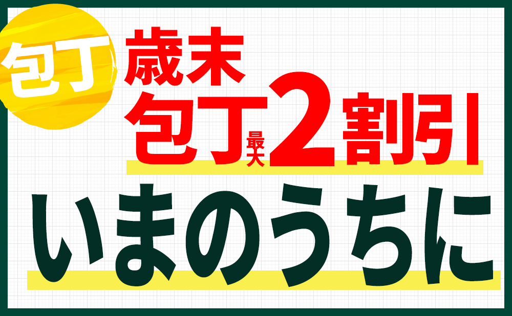 12月に入るとむねちかでは包丁の最大2割引を行っております。